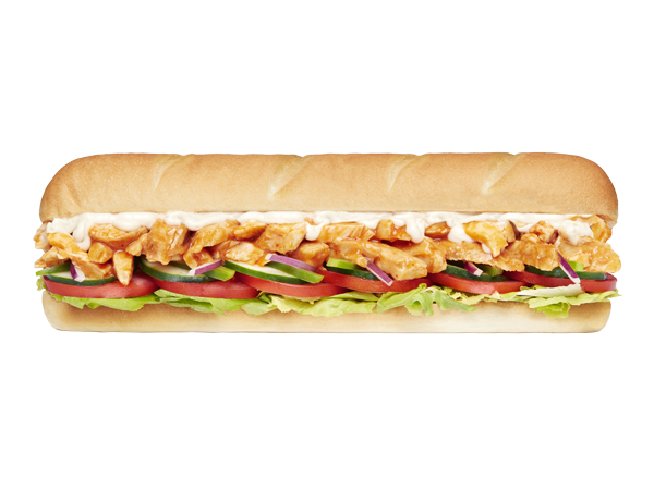 Nutritional information is based on a sub (6-inch or footlong) that includes white bread, buffalo chicken, lettuce, spinach, tomato, cucumbers, onions, and capsicum.