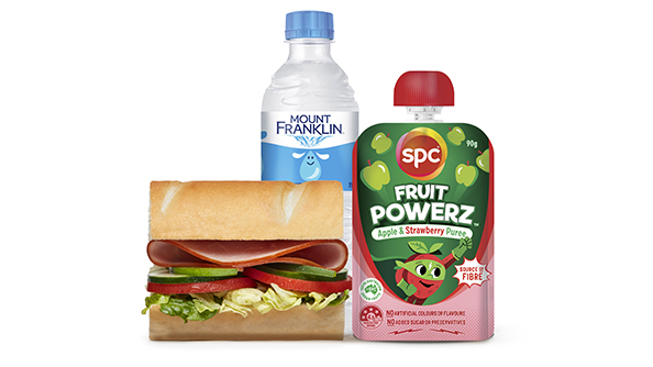 Kids Pak comes with Mini Sub, Fruit Powerz (strawberry & apple) & Bottled Water. Nutritional information is shown separately.
