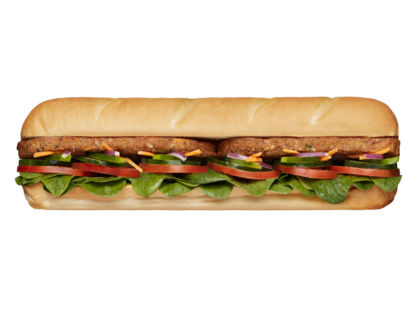 Nutritional information based on a sub (6-inch or footlong) that includes white bread, veggie patty, lettuce, spinach, tomato, cucumbers, onions, and capsicum.